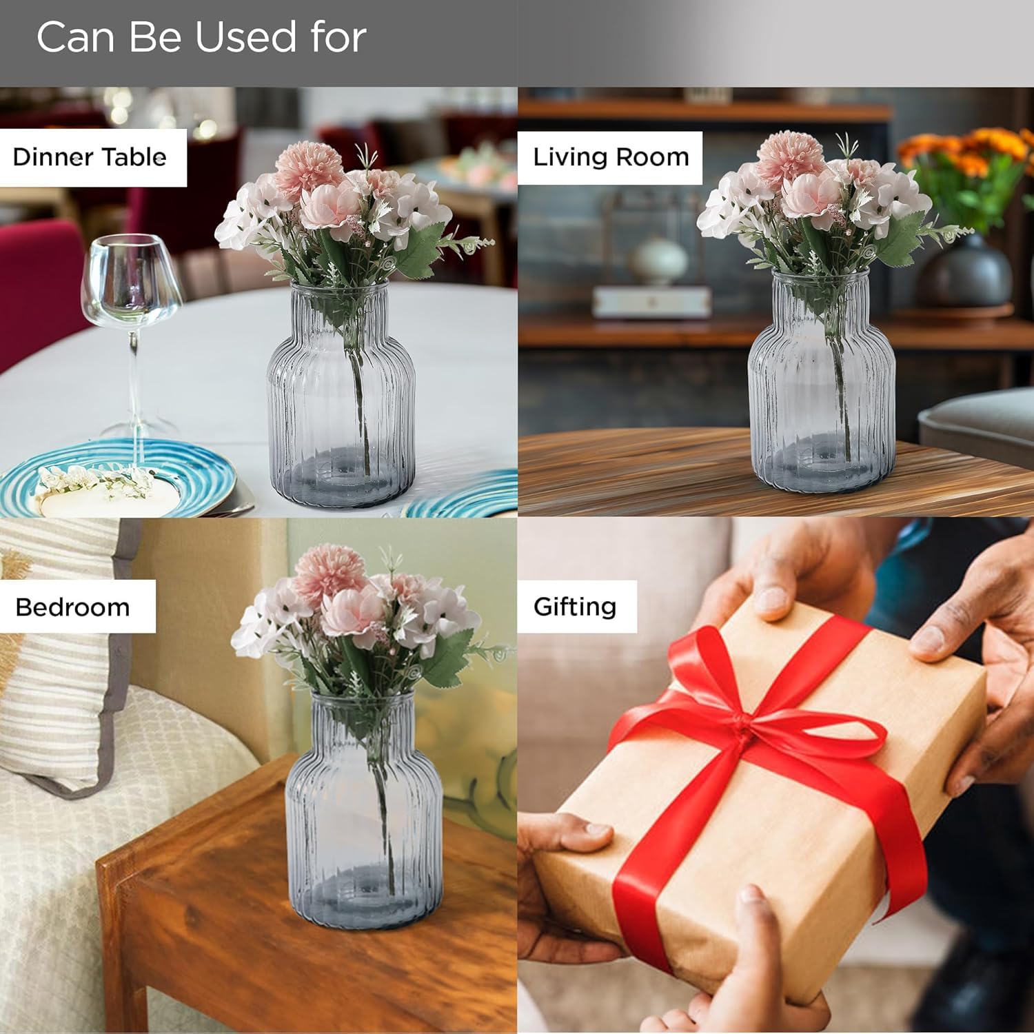 AESTHETIC FLOWER VASE FOR TABLE: Enhance your dining table or Centre Table Decoration Piece with our aesthetic glass vase options. These glass flower vases for home decor can beautifully hold your favorite floral arrangements, making them ideal for table decor.