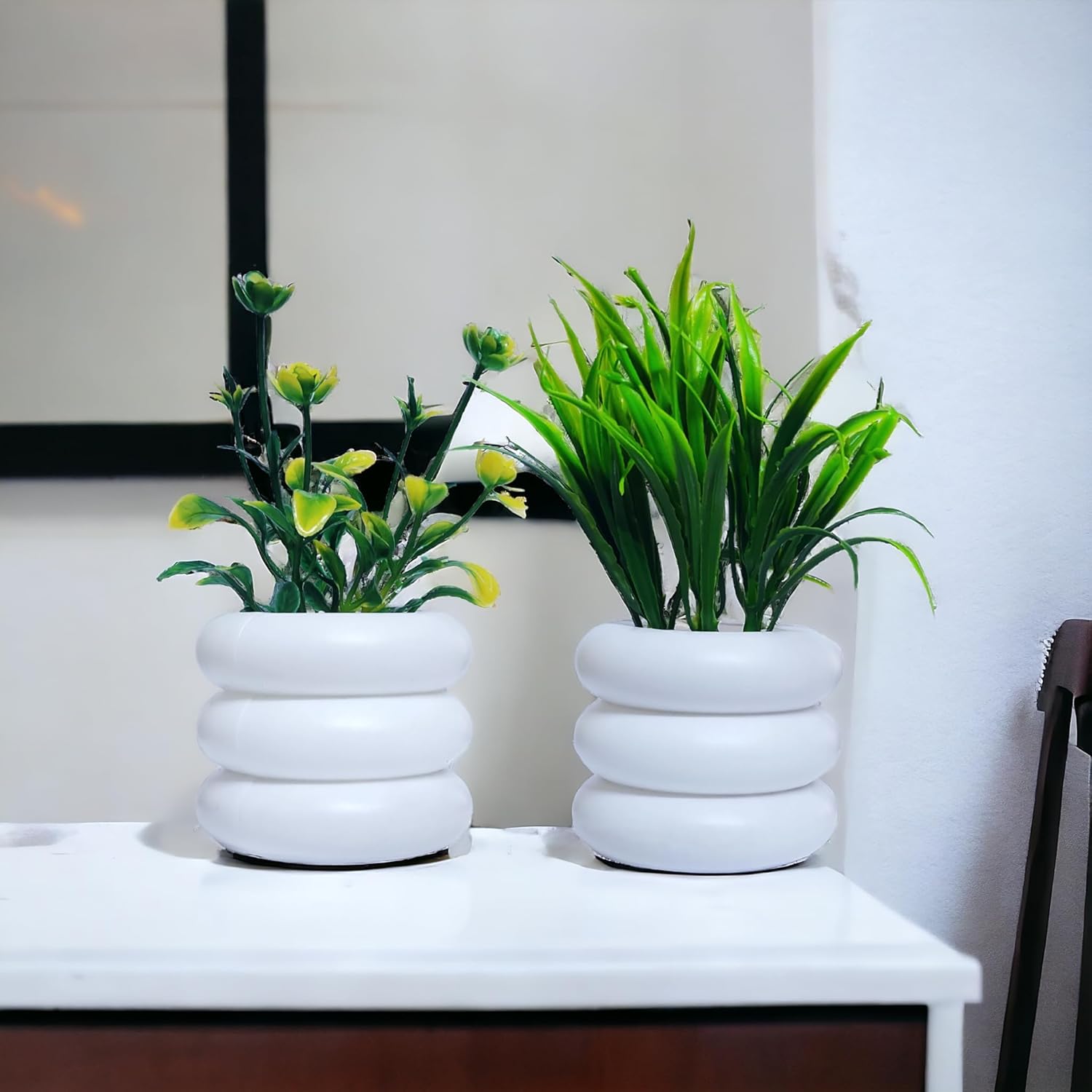 Refresh your space effortlessly with these faux plants-perfect as bedroom decoration items and decorative items for home. No green thumb, they come with a flower pot, adding timeless in room