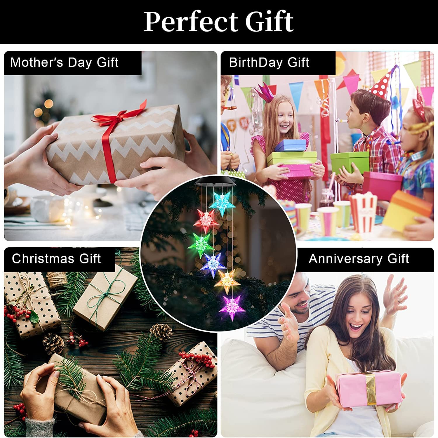Solar wind chimes are great garden decorations. They will be a great gift for mom, friends, neighbors, colleagues and so on. Give as a Mother’s Day gift, Thanksgiving gift, Christmas gift, sympathy gift, birthday gift, housewarming gift, etc