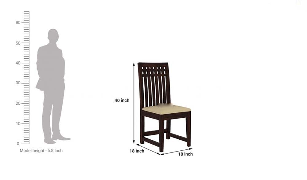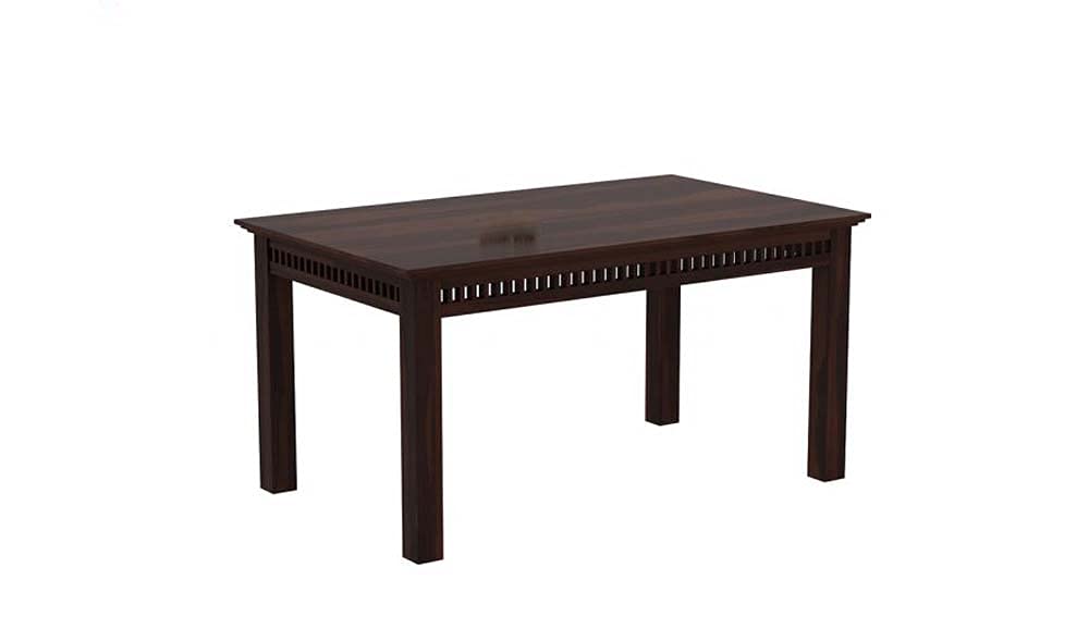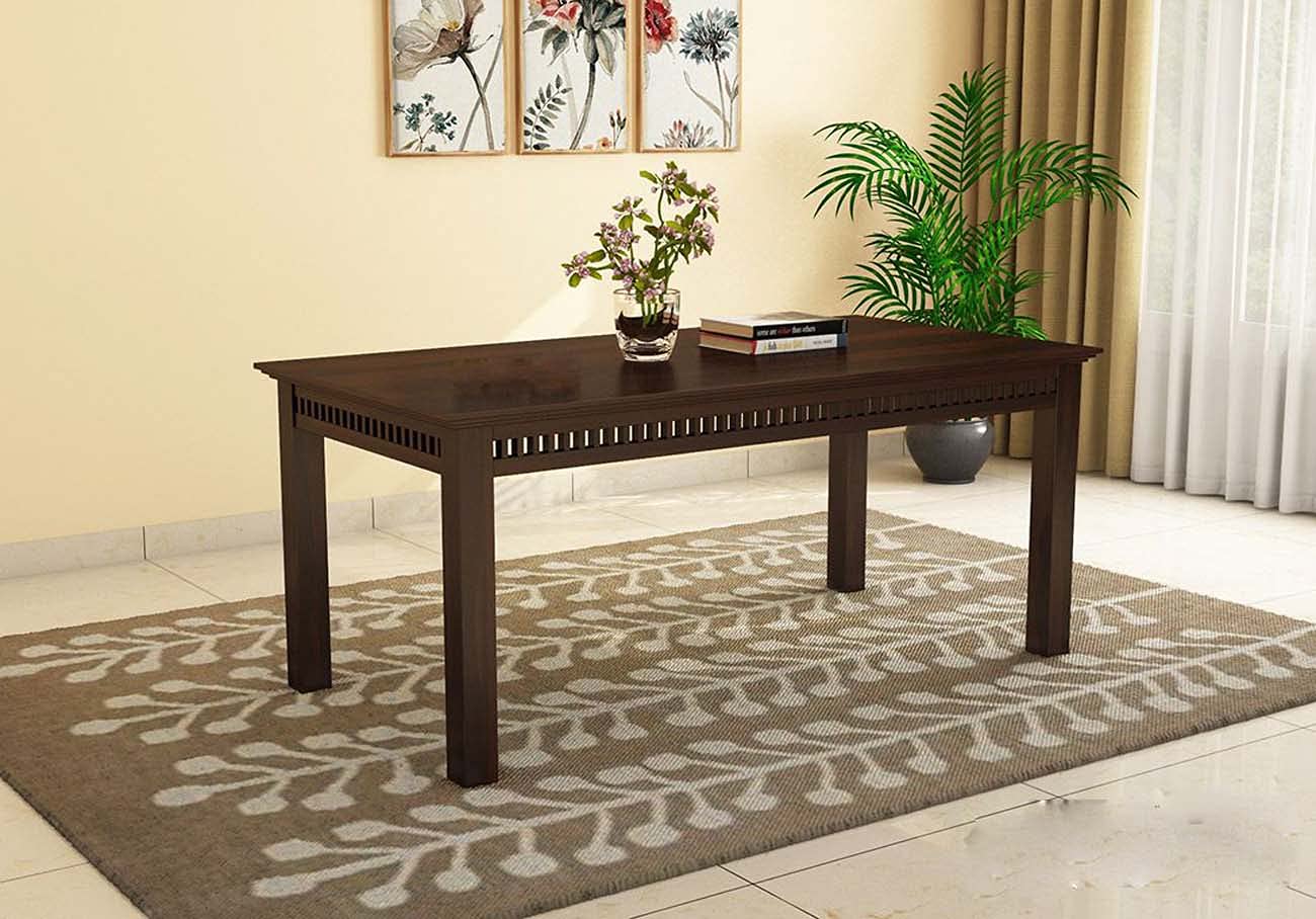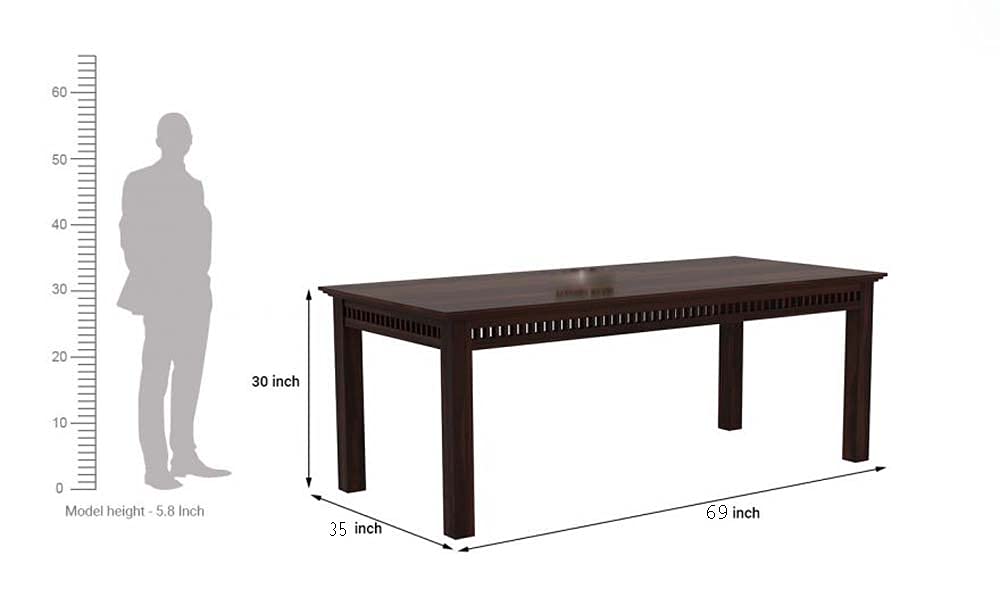 1. Product Dimensions: Table : Table:- Length: 69 in X Width: 35 in X Height: 30 in Chair : H 40 x W 18 x D 18; (all dimensions in inches) Chair Weight – 8 Kg | Table Weight – 18 kg . Chair Weight Bench :- Length ( 40 inch), Width ( 17.5 inch), Height (18 inch) Load Capacity – 120Kg | Table Weight Load Capacity – 300kg | Product Finish Color – Walnut Finish