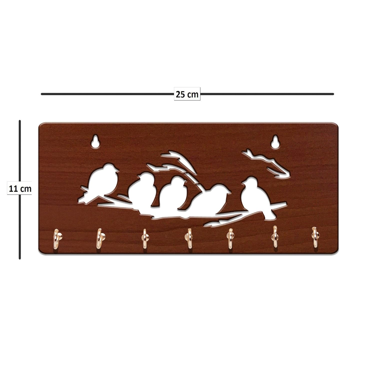 (Size: 25 cm x 11 cm x 0.3 cm, Color: Brown) (5-Birds-Brown-KeyHolder)